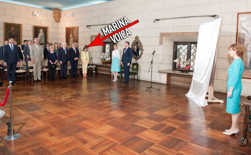 Marina Voica a parasit, pentru o zi, casa de la Breaza pentru a onora o invitatie la Palatul Elisabeta. Acolo, ea a participat la un eveniment prilejuit de dezvelirea unui tablou cu portretul Regelui Mihai.