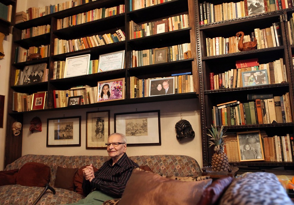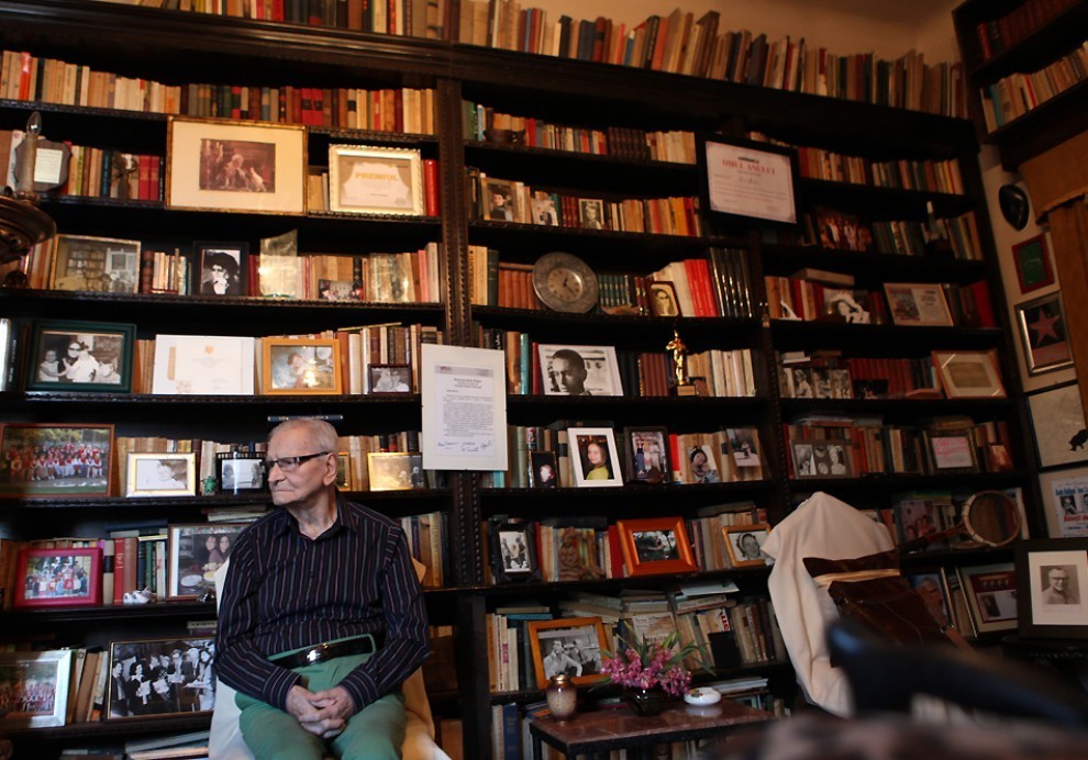 FOTO de senzatie din casa lui Radu Beligan! Maestrul locuieste printre carti vechi si are peretii tapetati de fotografii