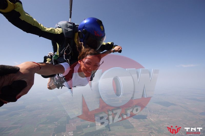 FOTO! Denisa Nechifor a sarit cu parasuta de la 4.000 de metri inaltime! Vezi ce alt record a stabilit vedeta