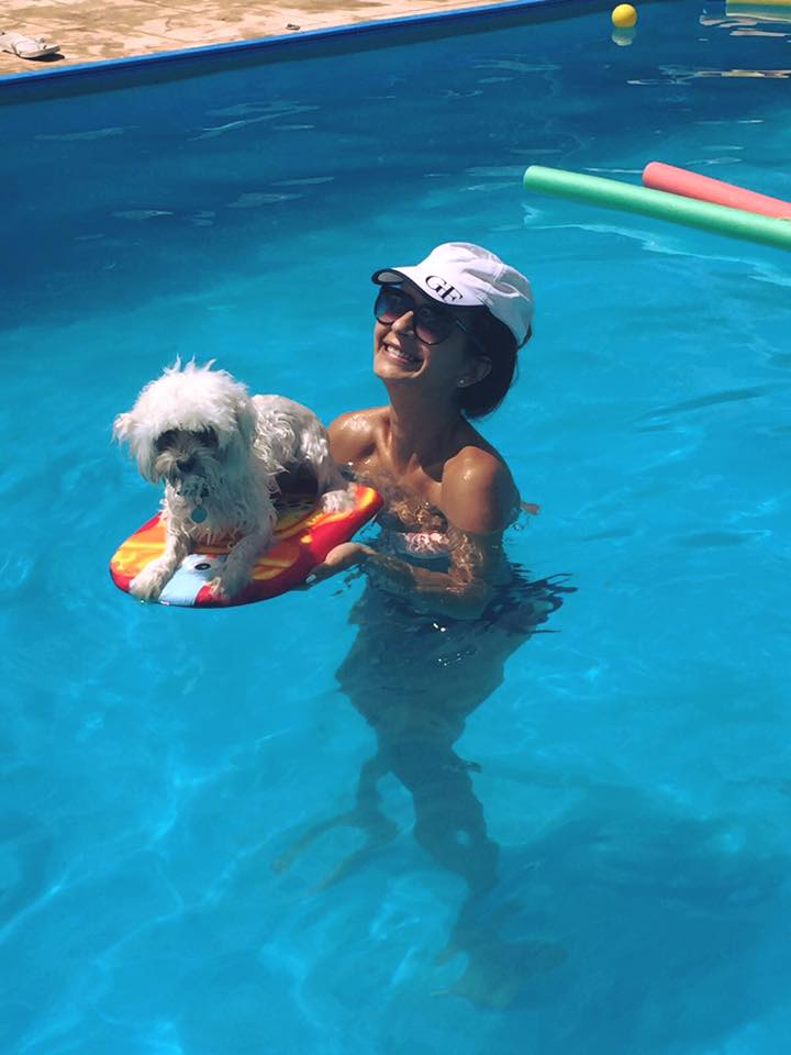 FOTO Dj Harra, super sexy la piscina! Vedeta a inotat cu catelul!