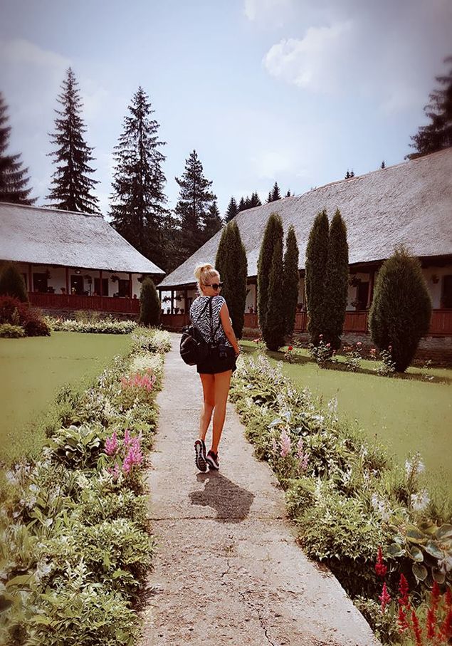 Probabil blondina era in trecere pe la Manastirea Cheia si nu-si facuse un drum special, ca altfel cu siguranta ar fi abordat un stil vestimentar decent.
