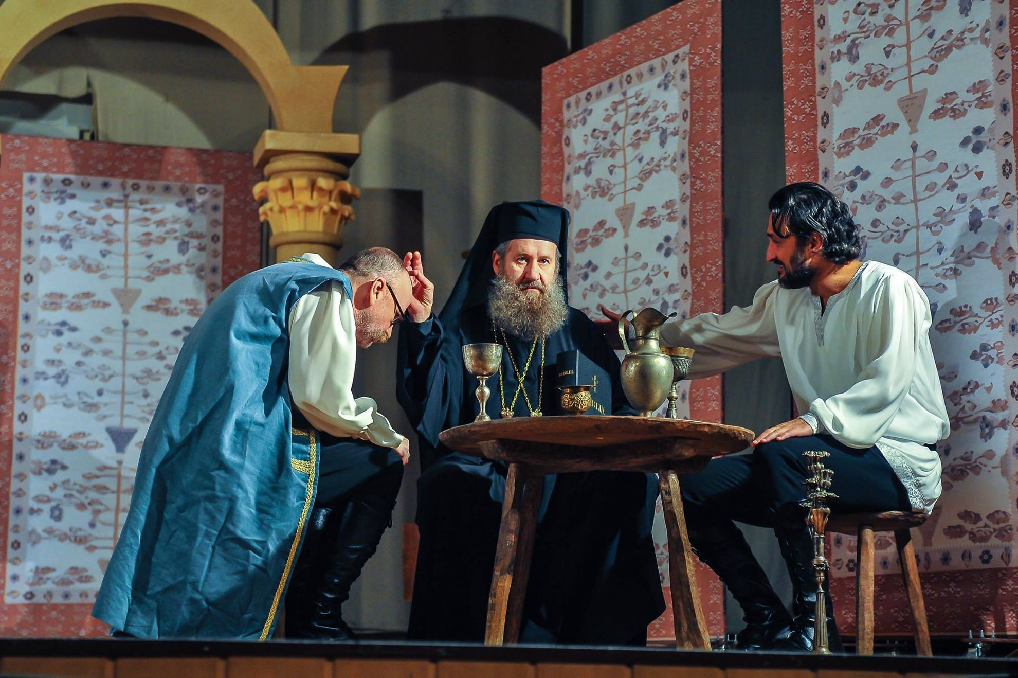 Alaturi de Cuncea, din distributie au mai facut parte: Mihai Coada (si el imbracat in preot, de data asta chiar pe scena), Ana Calciu, Damian Victor Oancea, Magda Catone, Tiberiu Paun, Dana Rusu, Alexandru Ionescu si Constantin Codrescu. Cuncea slujeste si in fata altarului
