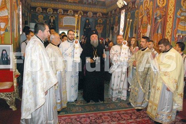 Actorul, in stanga lui IPS Pirineu, la o slujba (foto: Formula AS)