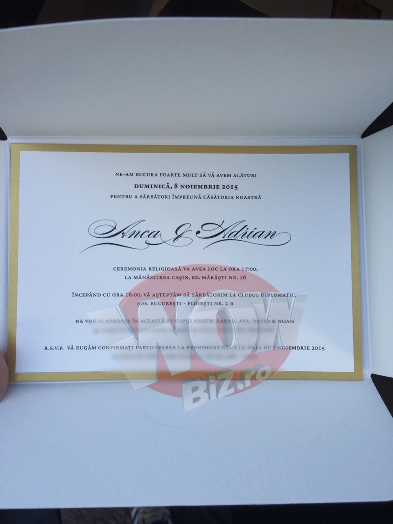 FOTO EXCLUSIV! Anca Serea si Adi Sina, sot si sotie peste 12 zile! Avem invitatia la cea mai asteptata nunta a toamnei! Mireasa NU va imbraca rochia alba!