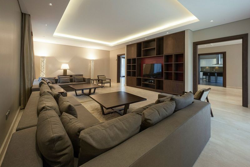 Livingul este confortabilLivingul este confortabilLivingul are o sofa, gen coltar dublu, masute de lemn, un bar si fireste o zona de luat cina sau pranzul, foarte eleganta.