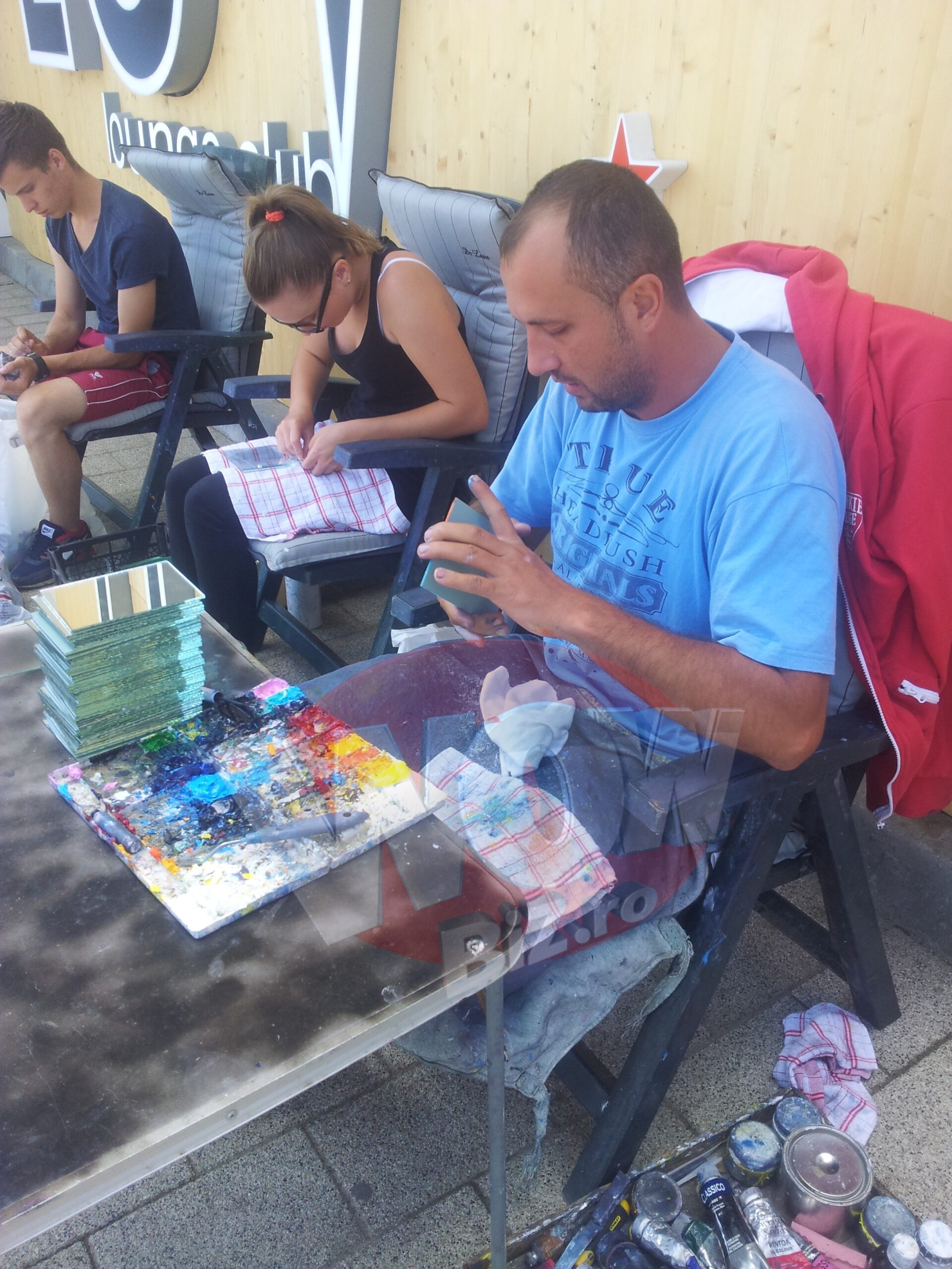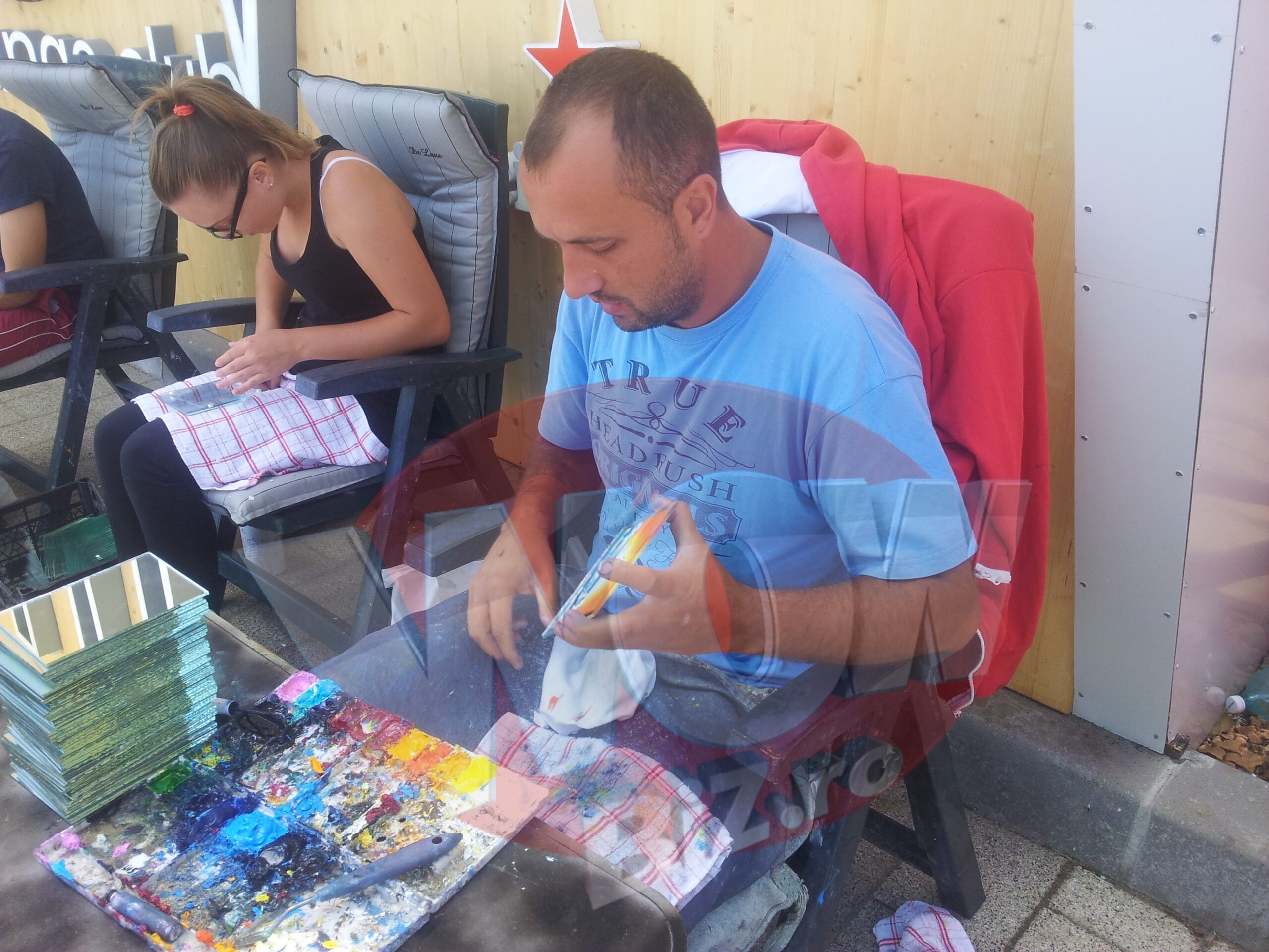 FOTO EXCLUSIV! L-ai vazut la “Romanii au talent”, dar acum a ajuns sa isi vanda creatiile in strada! Pictorul pe sticla castiga maruntis in statiunile de pe litoral si abia reuseste sa se intretina
