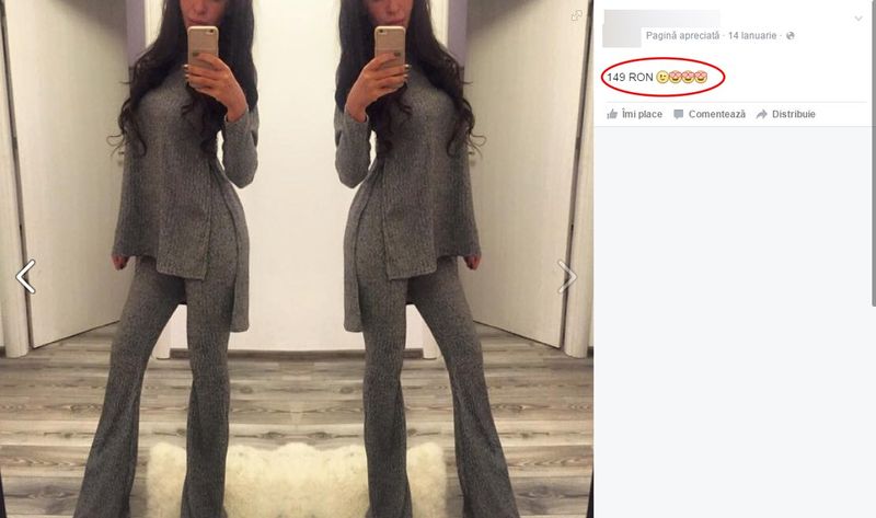 Cantareata insa nu a optat, de aceasta data, la o tinuta de fite, ci la una mai degraba “no name” comandata de pe internet, un compleu cu bluza si pantaloni care costa in jur de 150 de lei.