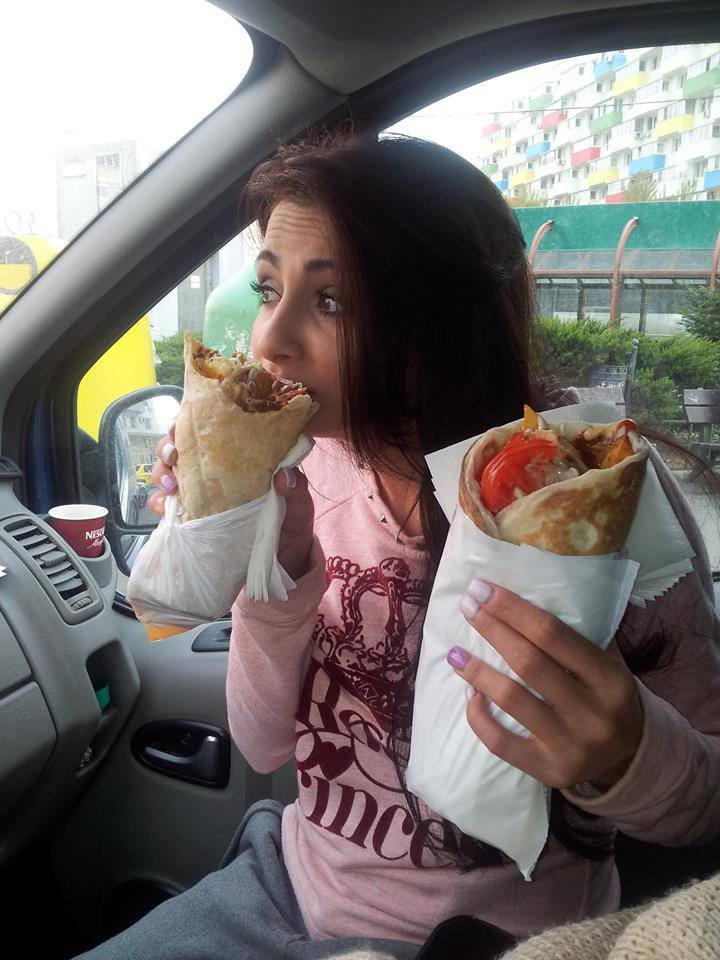 Roxana si Andra se mai refac dupa concerte si cu cate o shaorma, asa cum s-a intamplat in urma cu cateva zile.