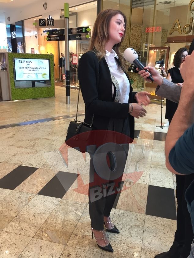 Tanara a imbracat o tinuta extrem de eleganta, cu un decolteu foarte adanc ce lasa la vedere sutienul. Barbatii prezenti nu-si puteau lua ochii de la bustul ei.