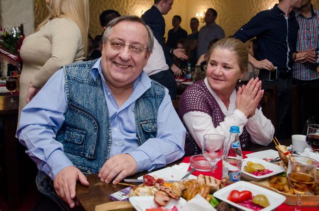 Actorul era tot un zambet, la fel si sotia, iar masa plina cu mancare si bautura. Tudorel Filimon s-a imbuibat cu gratare, carnati, cartofi, muraturi, salate, vin si voie buna!