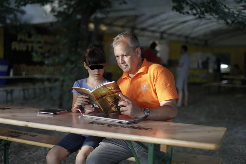 Dovada in acest sens si aceasta fotografie realizata chiar in tabara. In imagine se afla Dumitru Prunariu si Arina, citind impreuna o carte de literatura SF. Mainile barbatului stau sprijinite pe un laptop, iar in dreapta fetei se afla o tableta. Cei doi par total absorbiti de universul cuprins in paginile volumului, ignorand tot ce se intampla in jurul lor.