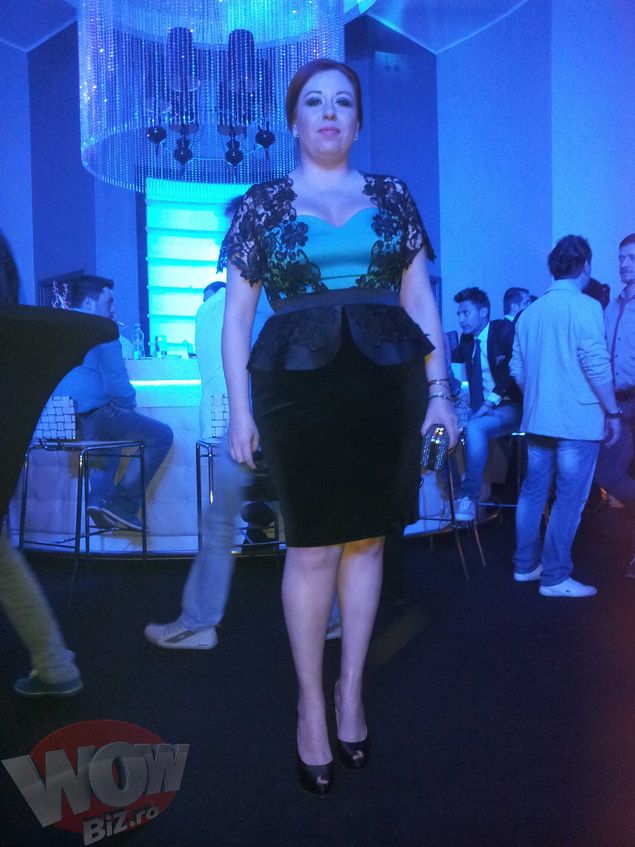 Sotia lui Cornel Pasat a ales o tinuta comoda pentru acest eveniment. Ea a venit la petrecere imbracata intr-un body negru, cu spatele gol, si o pereche de blugi.
