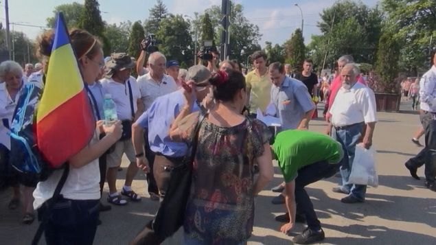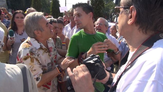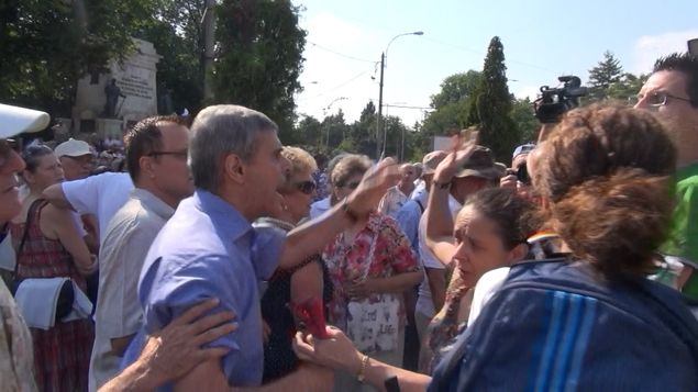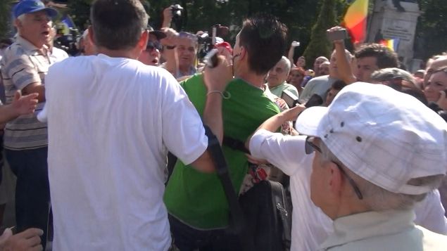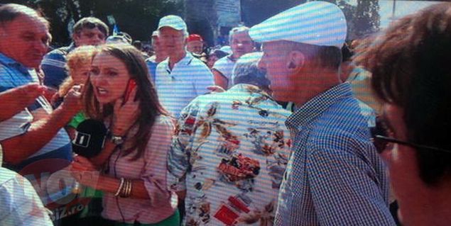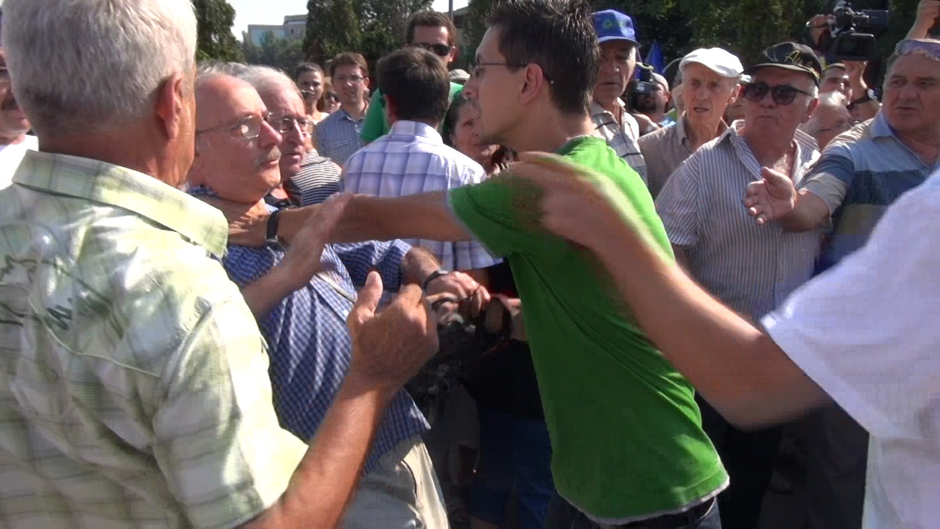 Purtatorul de cuvant al Jandarmeriei a refuzat sa dea o estimare a contingentului de jandarmi mobilizat, invocand ratiuni de securitate. Scandalul a izbucnit cand o reporterita B1TV a fost agresata de manifestanti, preponderent pensionari, care au sarit cu sacosele pe ziarista in timp ce aceasta incerca sa-si faca meseria.