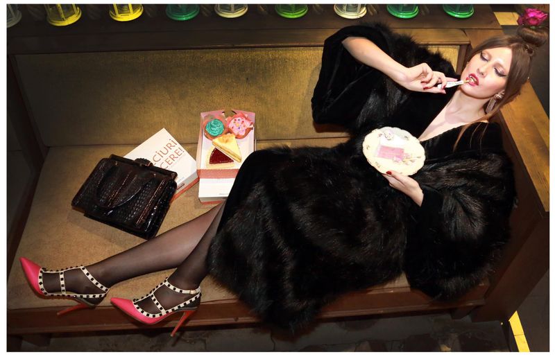 Vedeta Kanal D a publicat cateva instatanee imbracata provocator, intr-o haina de blana supradimensionata degustand senzual cateva prajituri.