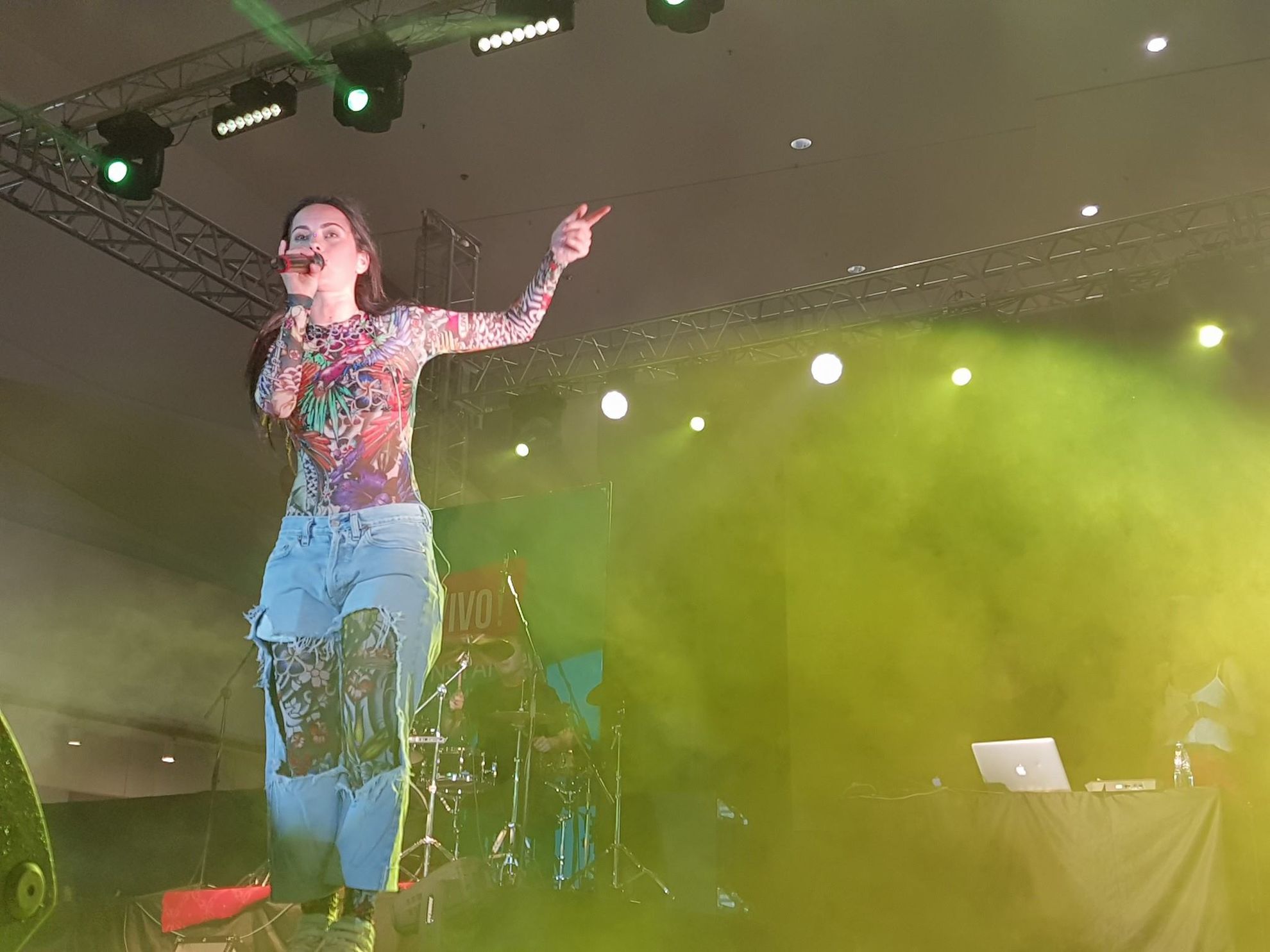 Inna a facut show de zile mari recent intr-un mall din Constanta. Cantareata si-a lasat fanii cu gura cascata cand si-a facut aparitia pe scena imbracata extrem de “colorat”, insa fara pic de machiaj pe fata.
