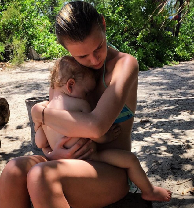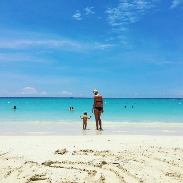 Ioana si Ducu l-au luat cu ei si pe fiul lor in varsta de un an si cateva luni. Actrita arata senzational in costum de baie, ea revenindu-si la silueta de dinainte de a ramane insarcinata.