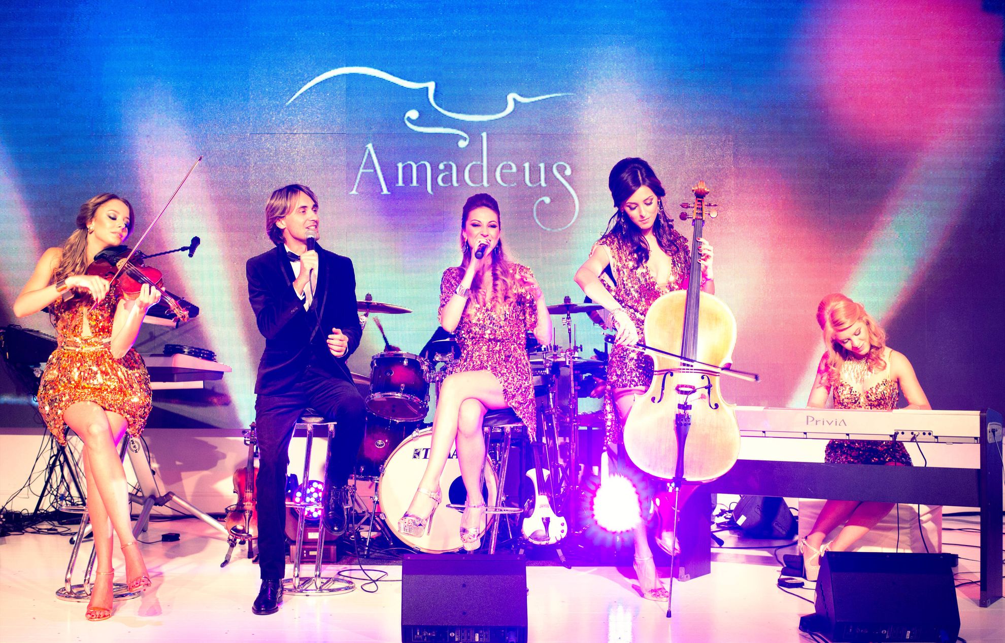 Luna aceasta trupa Amadeus a sustinut un recital extraordinar la Sala Palatului din Bucuresti, alaturi de cei 74 de instrumentisti ai Alexander Symphony Orchestra, in cadrul spectacolului celebrului tenor Italian Alessandro Safina.