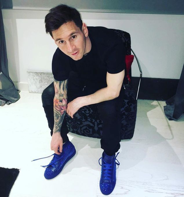 Starul Barcelonei poarta zi de zi tricourile si blugii creati de Plein, iar recent si-a cumparat o pereche de tenisi albastri, pe a caror piele sunt montate cristale, pretul acesteia fiind de 1.150