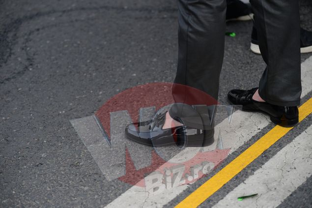 Solistul a ales sa poarte o pereche de incaltari lacuite, modelul acela care a disparut cu multi ani in urma din dulapurile majoritatii reprezentantilor sexului tare.