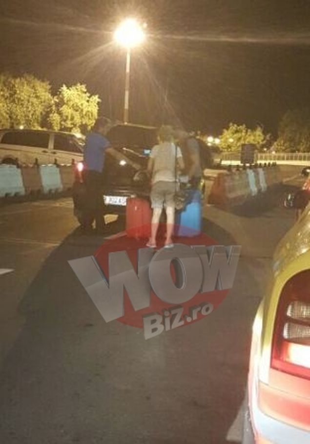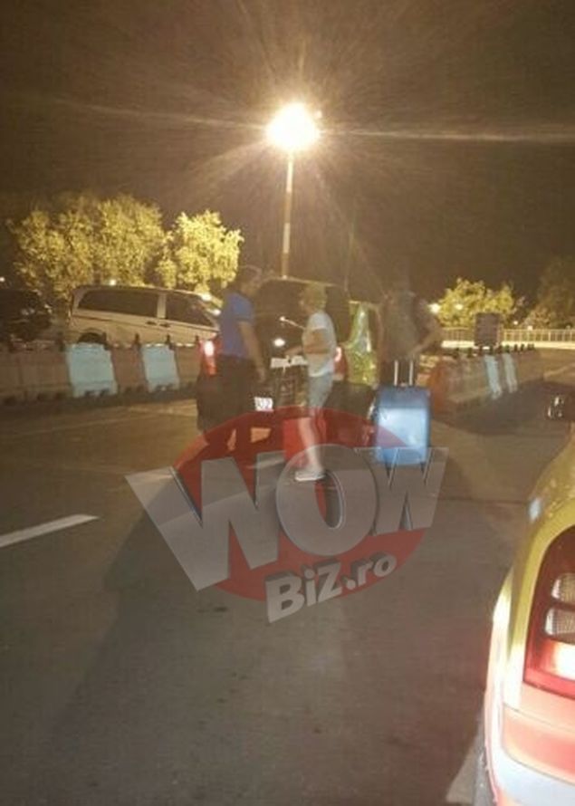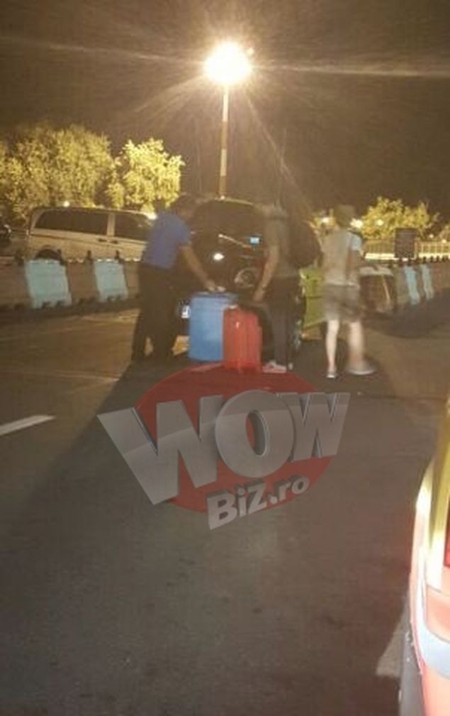 Blonda si iubitul ei erau imbracati extrem de lejer, in pantaloni, tricouri largi si adidasi si carau doua geamantane imense.