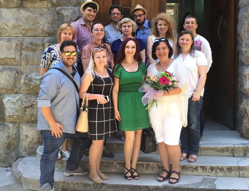 Oana Boc, intr-o rochita verde, scurta, in mijlocul colegilor sai Mama a doua fete mari, Oana Boc arata si se poarta ca o adolescenta. Cu parul lung si rochite scurte, nevasta primarului din Cluj, este mereu laudata de prieteni. Zilele trecute, ea a participat la o reuniune, la finalul careia s-au facut mai multe poze de grup.