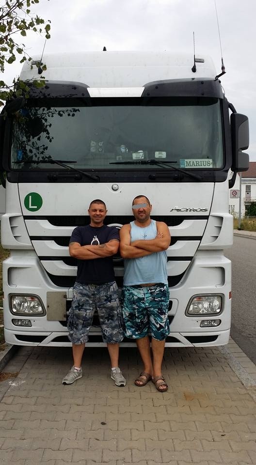 Claudiu Satran, sotul lui Carmen, studenta criminala de la Timisoara, si-a serbat ziua cu colegii soferi de tir pe autostrada.