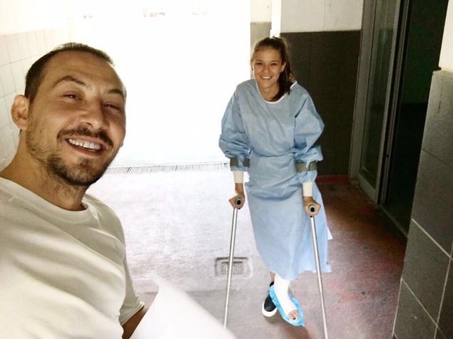 Stefan Stan a ajuns cu iubita lui, Simona, la spitalul Militar din Capitala, dupa ce bruneta si-a rupt un picior!