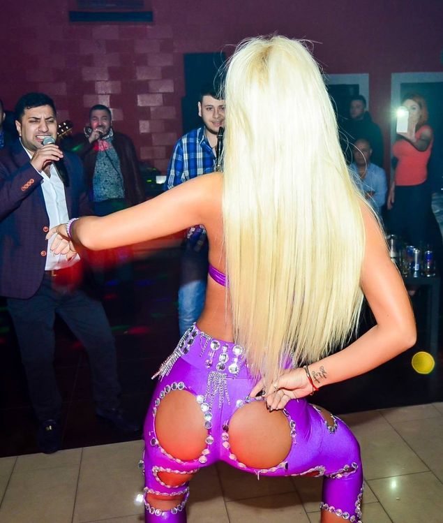 Blonda si-a miscat lasciv trupul si a fost remunerata de barbati cu sute de euro pe care ii bagau cand in sutienul decoltat, cand in pantaloni!
