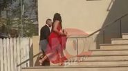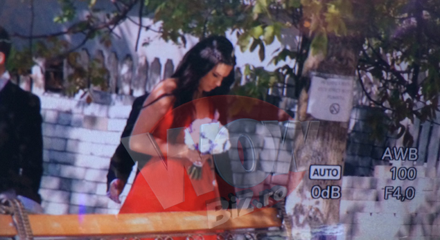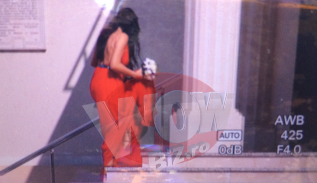 Cantareata a ales sa poarte o rochie rosie, ca focul, lunga, cu spatele gol cu care a facut senzatie printre invitatii aflati la fata locului.
