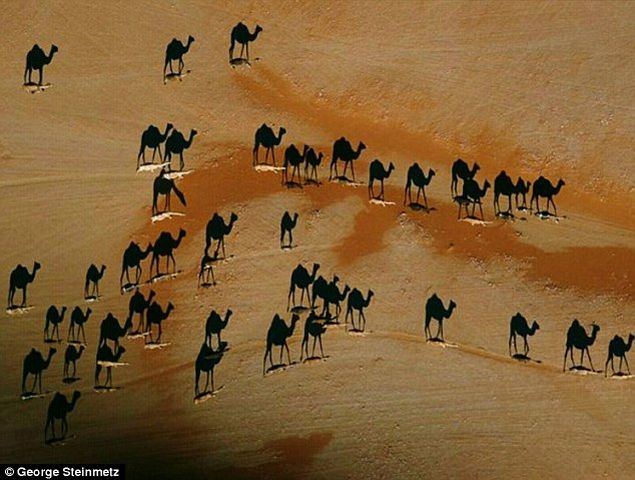 Astfel, desi la prima vedere pare ca va uitati la mai multe camile care merg agale prin desert, ceea ce credeti ca sunt camile sunt de fapt...umbrele lor reflectate in nisip.