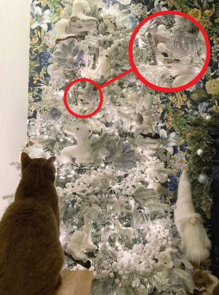 Fotografia care îi isterizează pe toți! Nimeni nu găsește pisica în acest brad de Crăciun