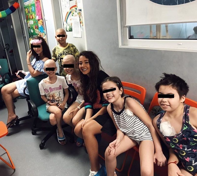 Cantareata a vizitat cativa adolescenţt internati la Spitalul Clinic de Urgenta pentru copii "Marie Curie".si s-a pozat alaturi de ei.