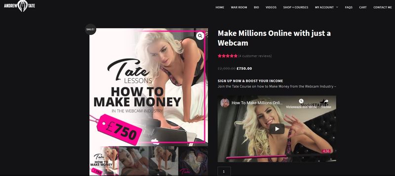 De curând însă, Cobra Tate a găsit încă o sursă serioasă de venituri pe lângă afacerea pe care o are în domeniul videochat-ului alături de fratele lui. Mai exact, și-a făcut un site în care, printre altele, vinde, la propriu, tot felul de ponturi celor care vor să reușească în viață. Și o face ținând tot felul de cursuri, care mai de care mai scumpe și, evident, ține și o serie de discursuri motivaționale, în stilul său, franc.