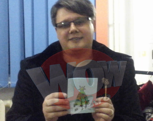 Dar, ma bucur de fiecare data cand am ocazia sa arat. Aaa, am primit o cana cu Iasiul, cu cateva imagini din Iasi. Am primit si o felicitare, un brad impodobit de la o admiratoare, iar de la mamaia noastra draga acesti cozonaci facuti la ea in casa, extraordinar de gustosi, pe care o sa-i mancam pe drum! (Rade!) Bineinteles ca am mai primit flori si, am mai primit ceva… ia sa vedem, ia sa vedem ce am mai primit ca voi sunteti tare curiosi.