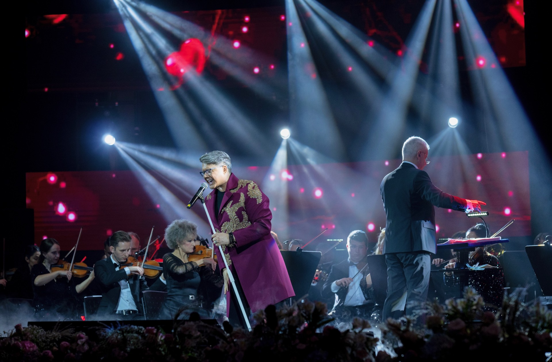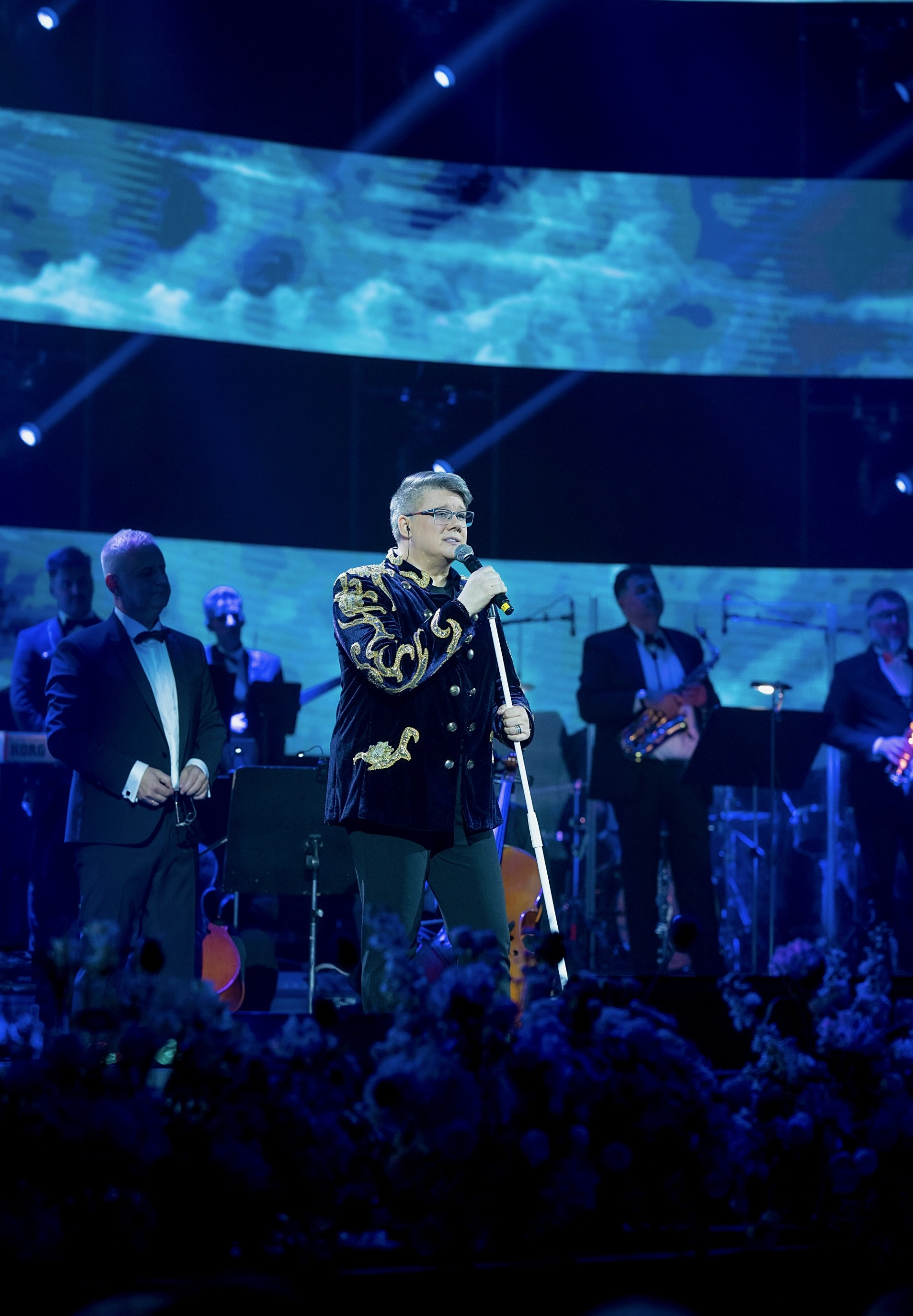 Alături de el, pe scenă, au fost peste 100 de artiști. A cântat alături de Orchestra Simfonică a Teatrului de Operă și Balet ”Oleg Danovscki” din Constanța, dar și de Corul Allegretto, care a sărbătorit pe scenă 50 de ani de existență. Toți au fost dirijați de muzicianul excepțional Cristian Obrejan, care s-a întrecut pe sine și care a făcut performanță, ducând piesele la un nivel superior prin ochestrațiile sale! Seara a fost desăvârșită de o scenografie impresionantă, care a costat peste 50.000