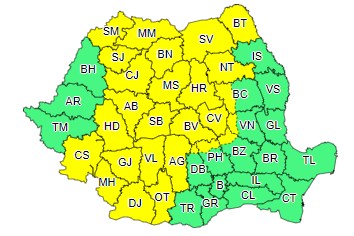 Conform Administrației Naționale de Meteorologie, mai mult de jumătate din țară este sub atenționare de cod galben.
