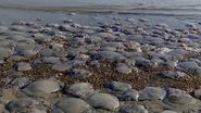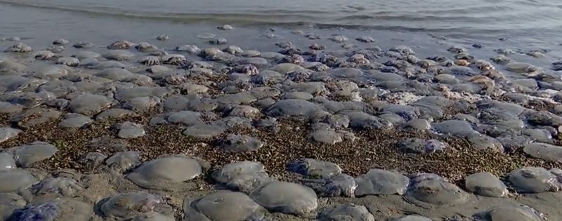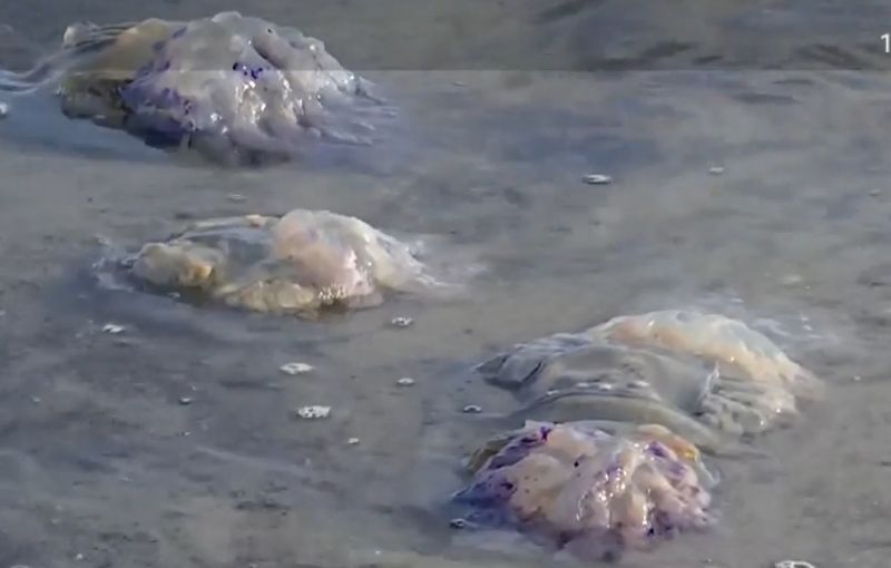 La începutul lunii septembrie au fost văzute în larg și în port, însă acum, din cauza condițiilor meteorologice nefavorabile, au fost aduse și la malul mării. Mirosul nu deranjează, deși majoritatea sunt deja moarte, dar cu toate acestea experții spun că ar fi mai bine să nu le atingeți.