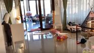 Tavi și Gabriela s-au trezit dis de dimineață și au transformat livingul de la parter într-un veritabil loc de joacă. Au adus jucării, au montat o căsuță colorată și au umflat zeci de baloane. Atunci când fetele s-au trezit, acestea au avut parte de o surpriză uriașă.