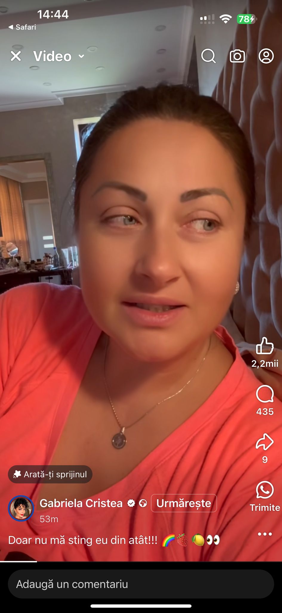 „Hei dragilor! Este luni și în mod normal încă de la prima oră a dimineții aș fi avut treabă și știți că mie îmi place să alerg, să fac treabă și să mă simt utilă, doar că astăzi nu s-a putut. Astăzi am simțit nevoia să stau în pat și să mă odihnesc, nu pentru că aș fi răcit. Știți că de curând am depistat că am niște probleme cu tensiunea arterială, am o tensiune mărită, față de una normală și pe lângă faptul că am început o dietă de care v-am tot povestit, am început să iau și un tratament prescris de medic pentru că nu trece doar de la mâncare, slăbit și iarba verde de acasă și din păcate am trecut în extrema cealaltă, astăzi am o tensiune foarte, foarte mică care efectiv mă ține în casă, în pat și tot încerc să mă odihnesc să pot fiu bine mai pe după-amiază să pot să fiu bine la emisiune, să pot ajunge fără nicio problemă. Problema este că de la o tensiune de 15 cu 11, cât aveam când am fost la medic, o tensiune foarte mare, am trecut astăzi la o tensiune mai puțin de 10, 98 cu 72-73, deci practic sunt dintr-o extremă în cealaltă extremă”, a spus Gabriela Cristea, pe rețelele de socializare.