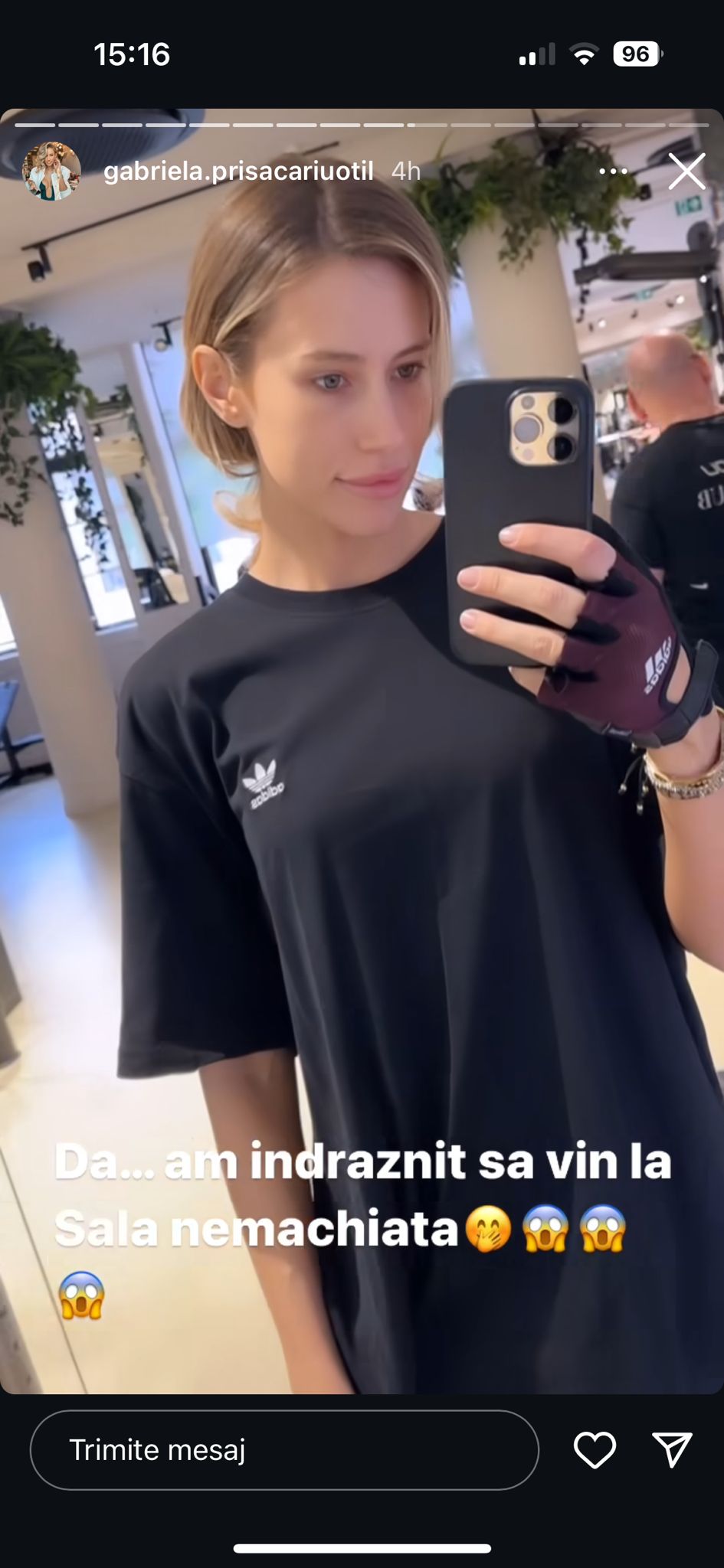 „Da… am îndrăznit să vin la sală nemachiată”, a scris Gabriela Prisăcariu la postarea pe care a făcut-o pe pagina de Instagram.