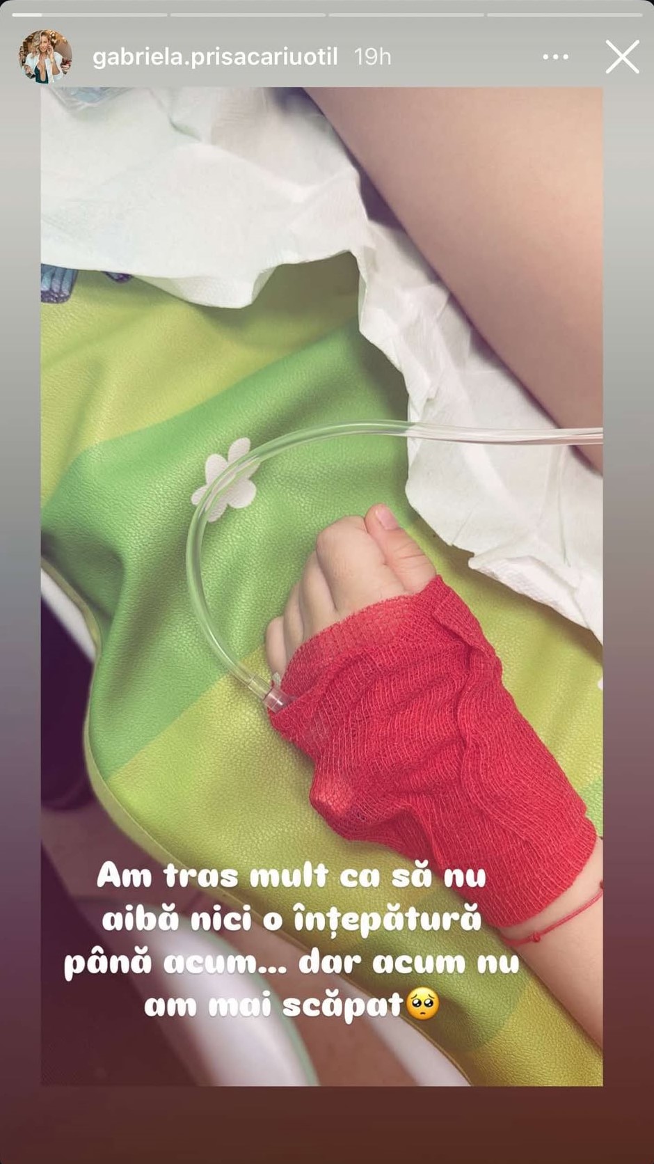 „Nu vreau să mă plâng. Nu suntem singurii părinți care trec prin asta. Nu cred că există o cale să treci mai ușor, sau că se obișnuiește cineva cu chestia asta. Este cel mai urât sentiment de pe lumea asta să nu îți poți ajuta copilul real, să îi iei tu durerea, să faci ceva repede. Asta m-a doborât. Ce mă întristează la fel de tare este faptul că îl știu pe el un copil energic și să îl văd așa moale, și să îl duc eu în brațe până la baie sau înapoi, asta a fost crunt, absolut oribil acest sentiment. Nu vreau să mă plâng. Toți părinții trec prin asta, știu că se poate și mai rău, doamne ferește.(...) Eram decisă că mai vreau încă un copil, dar după acest episod o să mă gândesc mai mult.”, a mărturisit Gabriela Prisăcariu.