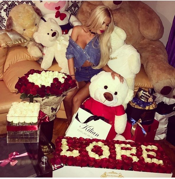 Copleşită de atenţie şi de cadouri din partea bărbatului care i-a cucerit inima, Loredana Chivu s-a fotografiat înconjurată de ursuleţi de pluş şi de trandafiri.