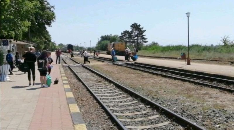 Gara e un șantier, iar turiștii care vin la mare fac test de echilibristică pentru a coborî din vagoane, printre materiale de construcții, ori să ajungă la peron.