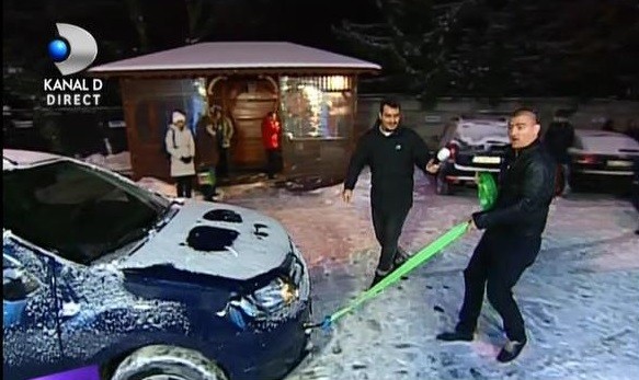 Invitat in emisiune la Teo Trandafir, Catalin Morosanu a facut inca o data dovada fortei sale. De data aceasta, „Moartea din Carpati” s-a apucat sa traga un Logan. Masina a fost scoasa din viteza in prealabil, apoi pusa in miscare fara probleme de Morosanu. „Ei, asta nu e nimic. Altii trag si camioane!’, a spus sportivul.