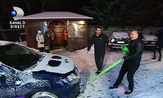 Genial! Ce face Morosanu cand ninge?! El nu trage sania, el trage LOGANUL! Cum s-a distrat "Moartea din Carpati" tragand pe zapada o masina fara probleme!