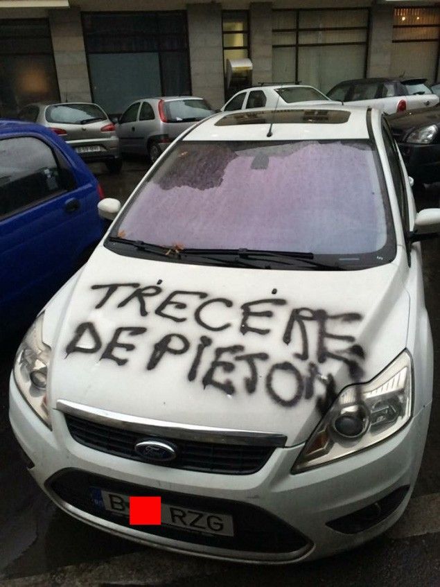 A luat un spray de vopsea si a scris pe capota masinii, cu litere mari si extrem de vizibile, ‘Trecere de pietoni’. Cu siguranta ‘victima’ si-a invatat lectia…