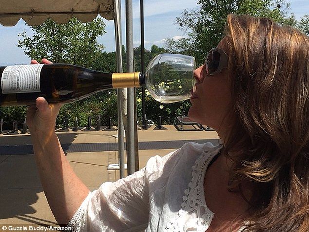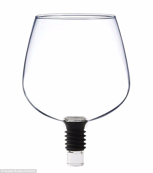 Toti bautorii de vin au acum un motiv in plus sa deschida o sticla plina si sa sarbatoreasca aceasta inventie noua! Guzzle Buddy este un pahar de vin care a fost inventat, evident, de un bautor de vin. Acesta este lipsit de picior si, pe tija de sticla, are un cauciu care il ajuta sa se fixeze de minune in gura sticlei. Dupa ce il introduci cu grija si il fixezi, poti sa bei vin direct din sticla cu pahar! Savurat placut!