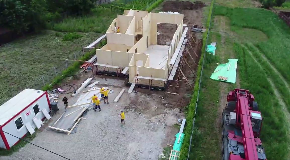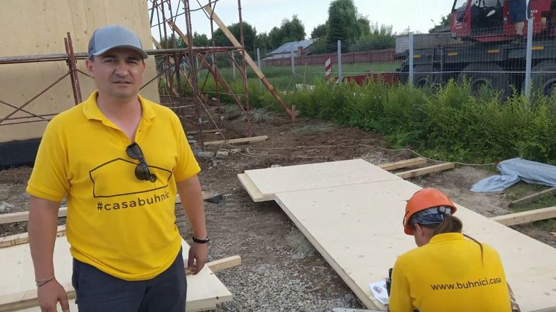 In acest moment se ridica peretii extreiori ai caseiGeorge Buhnici s-a hotarat sa se mute la casa. El a cumparat, anul trecut, un teren de 1.600 mp in localitatea ilfoveana Tamasi, la 5 minute de studiourile Buftea. Vedeta de televiziune cunoscuta pentru pasiunea pentru IT si masini s-a apucat deja de treaba: zilele trecute a turnat fundatia iar acum este la stadiul de asamblare a peretilor exteriori. Treaba merge repede, iar teremenul preconizat pentru finalizarea constructiei este de doar o luna si jumatate, tinand cont ca Buhnici nu construieste cu materiale traditionale ci foloseste panouri de lemn de tip CLT (Cross Laminated Timber), un produs la mare moda in Statele Unite. (Intra aici sa citesti totul despre casa lui George Buhnici)