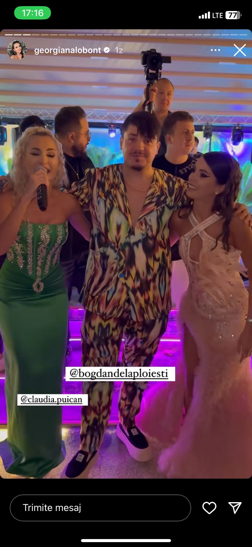 În timp ce își făcea numărul în fața invitaților, Bogdan de la Ploiești a fost acompaniat de Georgiana Lobonț. Cei doi au cântat împreună, au dansat, s-au simțit bine, la un moment dat chiar îmbrățișându-se și ținându-se de mână. Ulterior, lângă ei doi a venit și Claudia Puican, care a completat perfect mixul de voci la microfon. Din imaginile postate de artist pe rețelele de socializare, s-a putut vedea cu ochiul liber cât de apropiați au fost artiștii care au fost invitați la eveniment. Pe lângă cei deja enumerați, a fost nelipsit și Luis Gabriel, care, de asemenea, îi poartă artistei un respect considerabil.