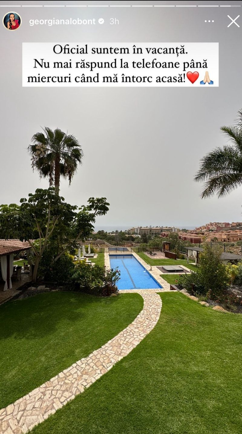 „Oficial suntem în vacanță. Nu mai răspuns la telefoane până miercuri, când mă întorc acasă.”, a spus Georgiana Lobonț în mediul online.
